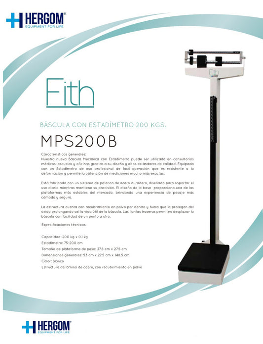 Bascula c/estadimetro, 200kg Mca. Hergom Mod. MPS200B